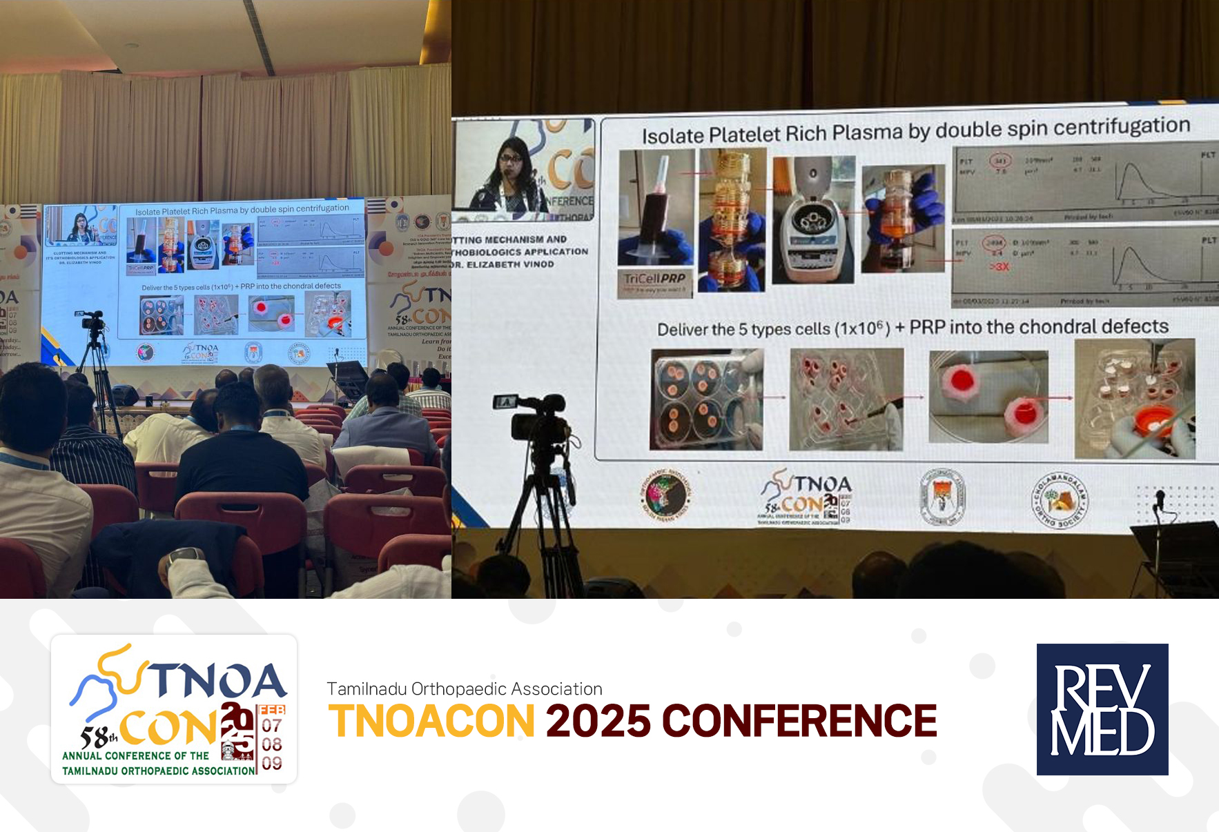 At this year’s event, Dr. Elizabeth Vinod, a key medical advisor for REV-MED, delivered a lecture titled “Clinical Effectiveness of PRP-Based Treatments in Orthopedics.” Her presentation focused on the regenerative and pain-relieving effects of REV-MED’s TriCell PRP technology.